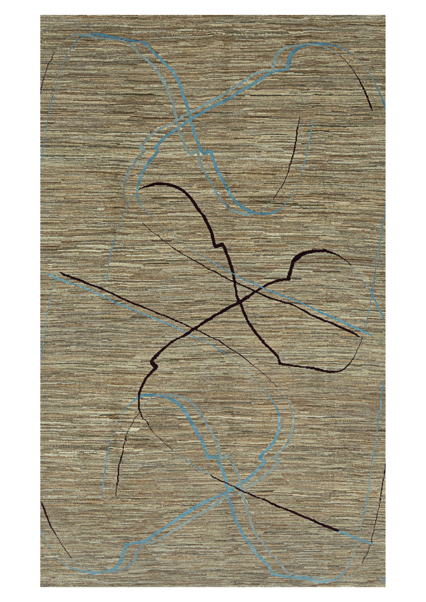 Quatrième volet de cette collection dédiée à l’expression graphique de la matière, le tapis MT 222 Résonances des fibres #4 se distingue par une composition aérienne et une élégance cinétique. Sur un fond texturé aux nuances sable et ficelle, se déploie un entrelacement de lignes calligraphiques. Le dialogue entre les tracés noirs incisifs et les courbes bleu ciel crée une impression de transparence et de légèreté, évoquant des croquis d’architecte ou des ondes en expansion.