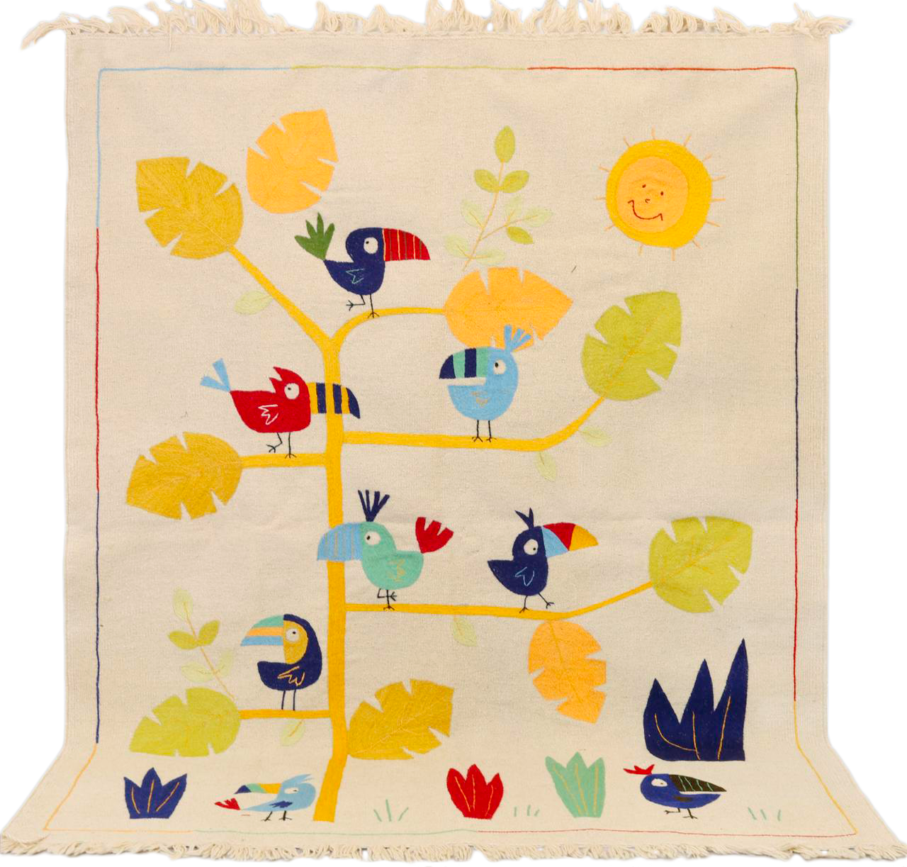 Tapis Kilim brodé contemporain – Nid à perroquets